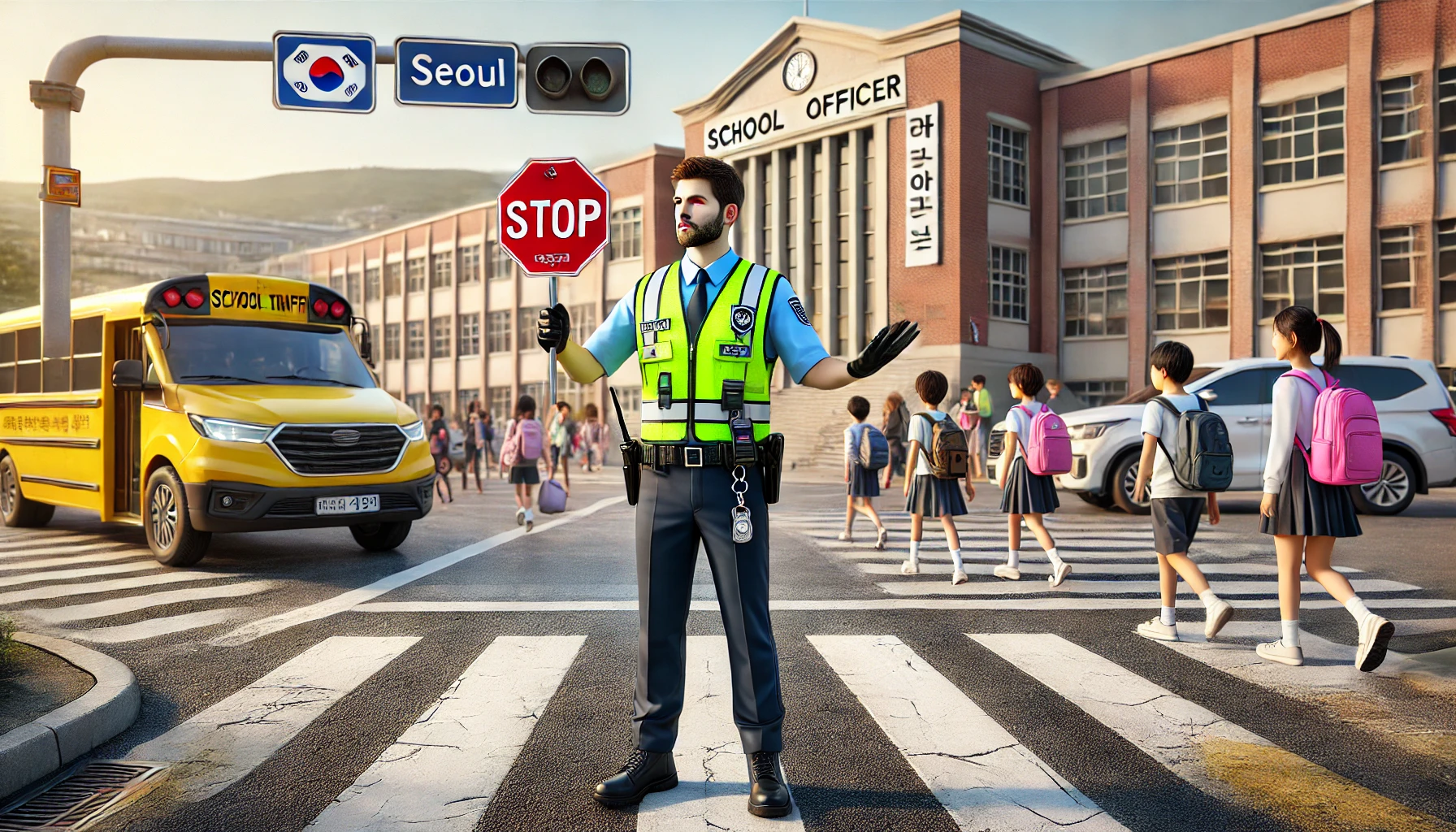 학교 주변의 혼잡한 교통 상황을 해소하고, 학생들이 안전하게 횡단보도 및 정류장을 이용할 수 있도록 돕습니다.